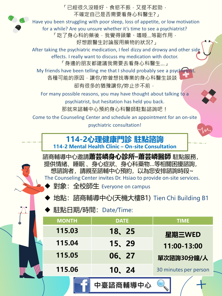 114-2 身心科醫師駐診服務時間表