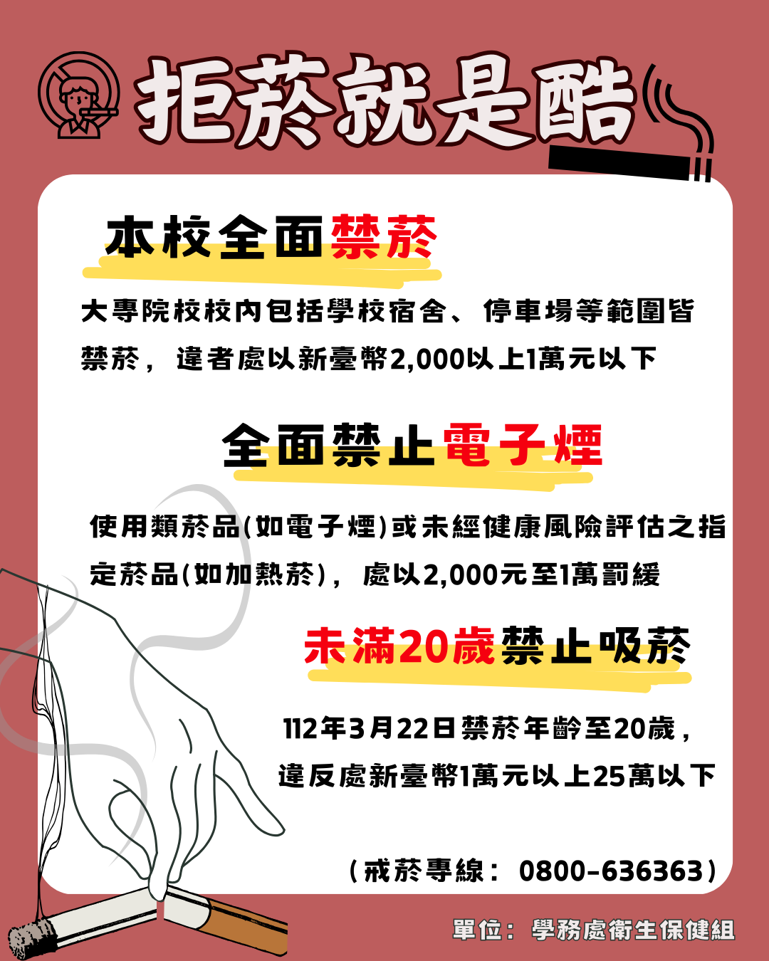 依據本校菸害防制實施辦法及112年3月22日菸害防制新法正式實施。